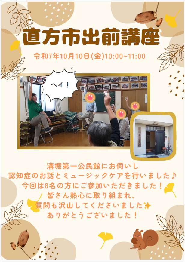 トップページ > お知らせ一覧 > お知らせ > 認知症医療センター > 「直方市出前講座」で溝堀第一公民館に伺いました (認知症のお話+ミュージックケア)