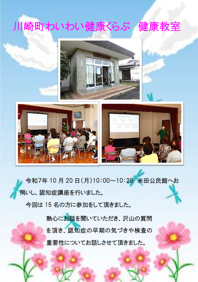 トップページ > お知らせ一覧 > お知らせ > 認知症医療センター > 「川崎町わいわい健康くらぶ 健康教室」で米田公民館に伺いました(認知症講座)
