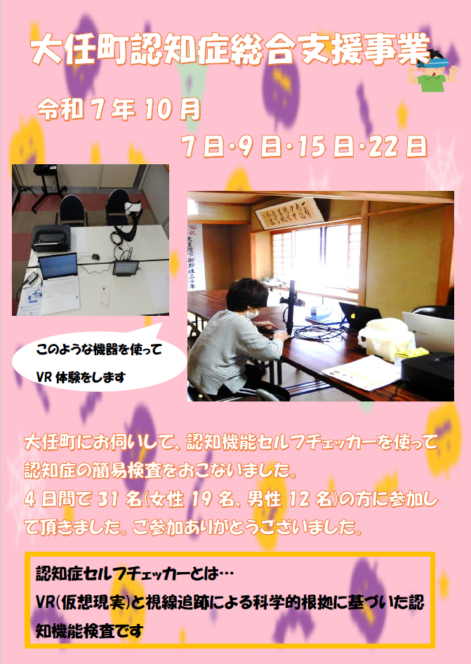 トップページ > お知らせ一覧 > お知らせ > 認知症医療センター > 「大任町認知症総合支援事業」で大任町に伺いました(認知機能セルフチェッカー)