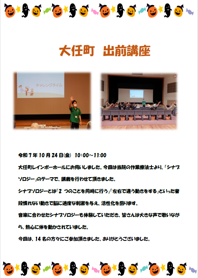 トップページ > お知らせ一覧 > お知らせ > 認知症医療センター > 「大任町 出前講座」で大任町レインボーホールに伺いました(シナプソロジー)