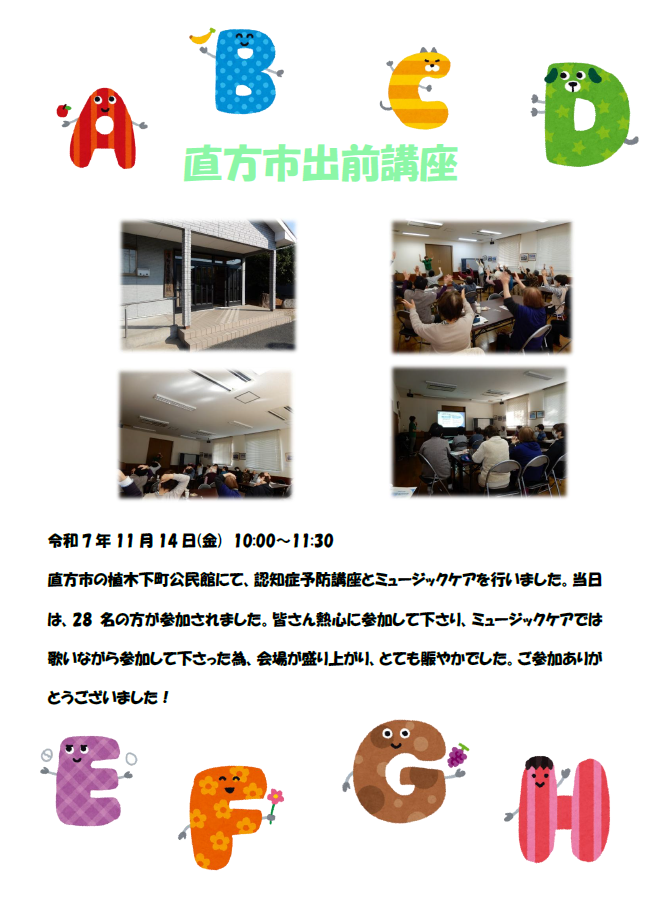 トップページ > お知らせ一覧 > お知らせ > 認知症医療センター > 「直方市出前講座」で植木下町公民館に伺いました(認知症予防講座+ミュージックケア)