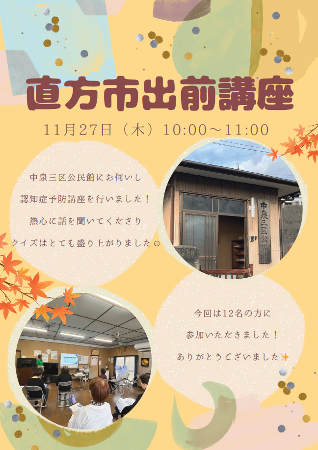 「直方市出前講座」で中泉三区公民館に伺いました  (認知症予防講座)