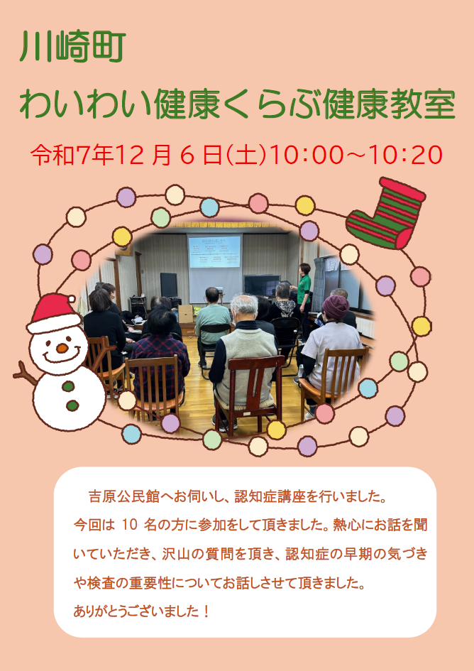 「川崎町 わいわい健康くらぶ健康教室」で吉原公民館に伺いました(認知症講座)