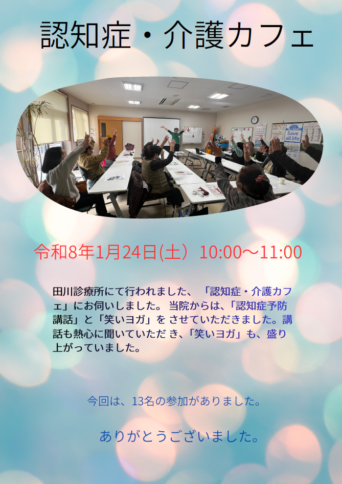 トップページ > お知らせ一覧 > お知らせ > 認知症医療センター > 田川診療所で「認知症・介護カフェ」に参加しました(認知症予防講和+笑いヨガ)