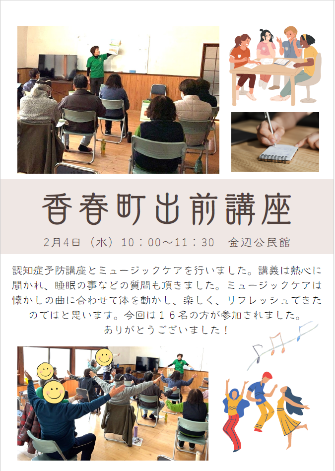 トップページ > お知らせ一覧 > お知らせ > 認知症医療センター > 「香春町出前講座」で金辺公民館に伺いました(認知症予防講座+ミュージックケア)