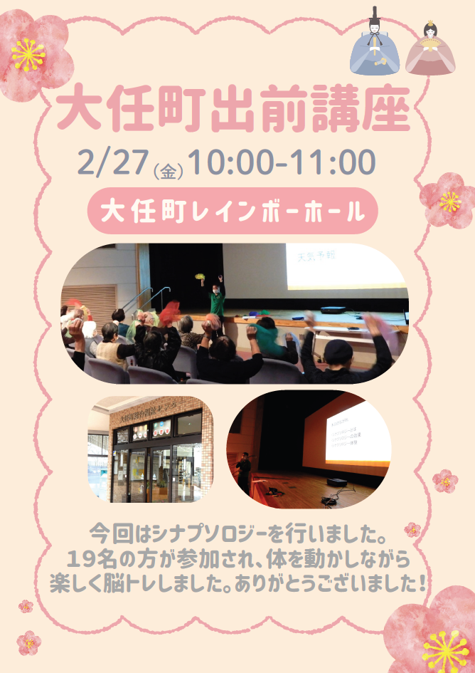 トップページ > お知らせ一覧 > お知らせ > 認知症医療センター > 「大任町出前講座」で大任町レインボーホールに伺いました(シナプソロジー)
