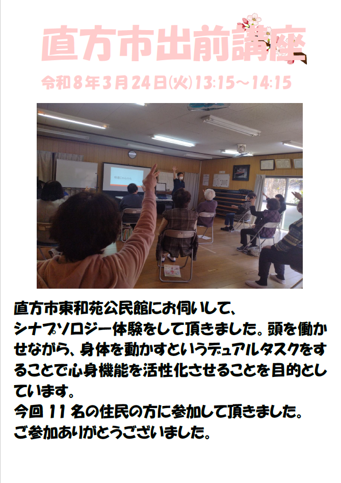 「直方市出前講座」で直方市東和苑公民館に伺いました(シナプソロジー)