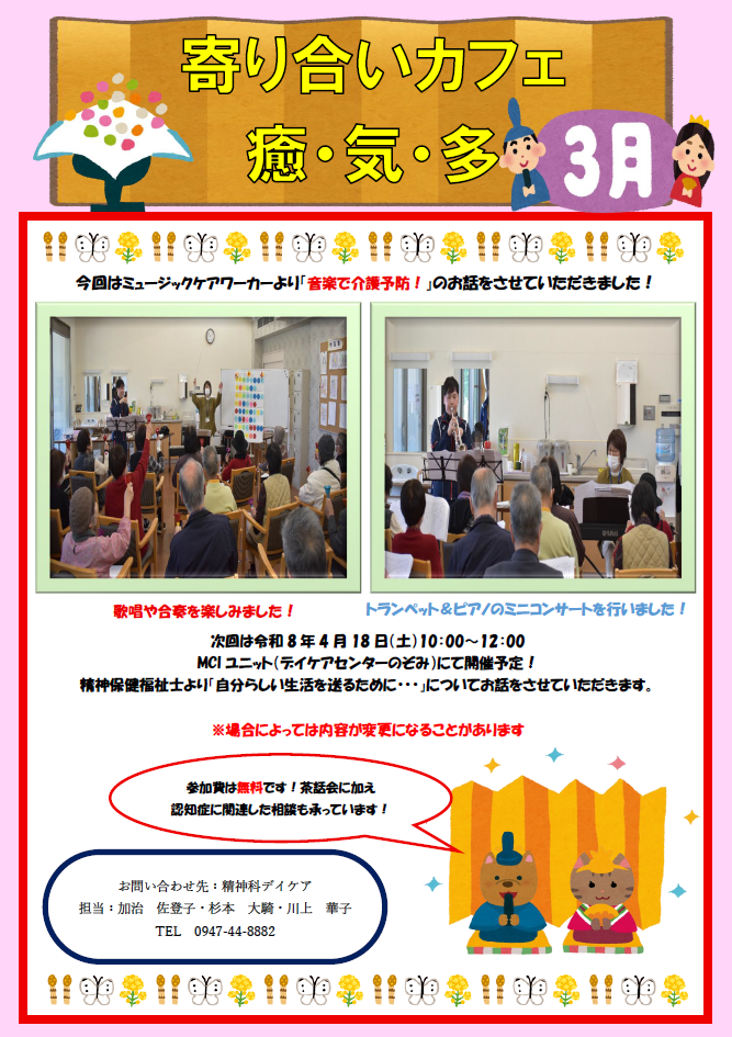 トップページ > お知らせ一覧 > お知らせ > 精神科デイケア > 「寄り合いカフェ癒・気・多」3月号