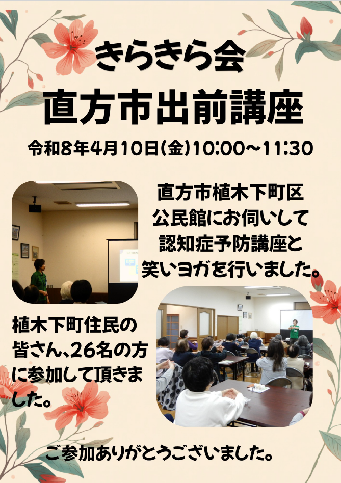 「直方市出前講座」で植木下町区公民館に伺いました(認知症予防講座+笑いヨガ)