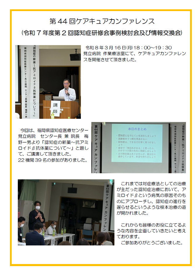 トップページ > お知らせ一覧 > お知らせ > 認知症医療センター > 第44回 ケアキュアカンファレンスを開催しました