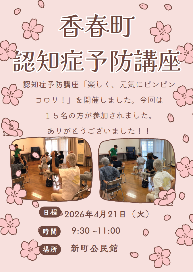 トップページ > お知らせ一覧 > お知らせ > 認知症医療センター > 「香春町 認知症予防講座」で新町公民館に伺いました